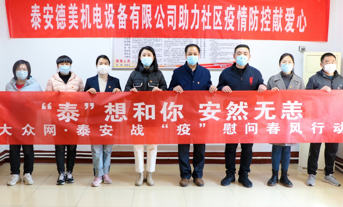 在疫情防控關(guān)鍵時(shí)期,泰安德美機(jī)電設(shè)備有限公司作為泰安國際商會(huì)副會(huì)長單位、泰山區(qū)政協(xié)委員獻(xiàn)出愛心,通過市貿(mào)促會(huì)、區(qū)貿(mào)促會(huì)牽線搭橋,為鐵路新村捐贈(zèng)防疫物資,