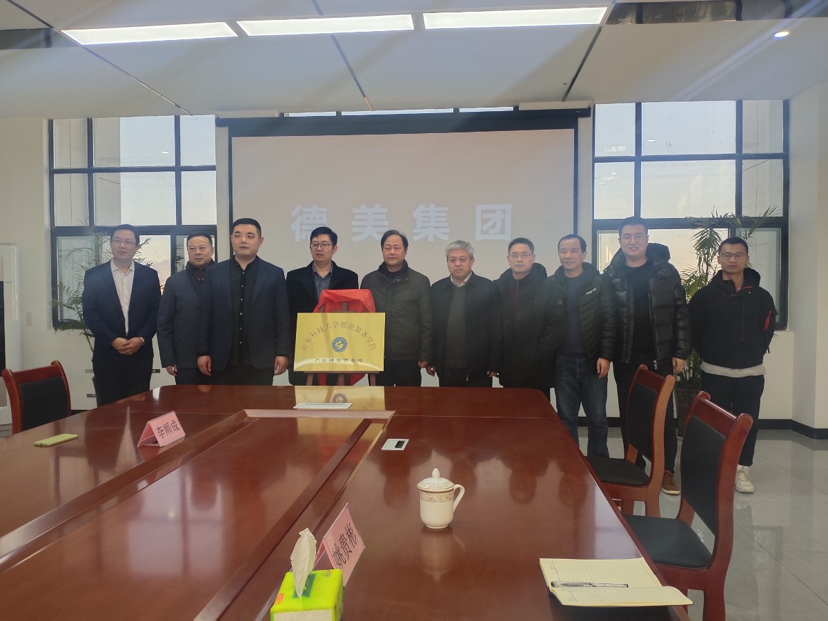 2022年1月13日山東科技大學(xué)智能裝備學(xué)院授牌泰安德美機(jī)電設(shè)備有限公司“產(chǎn)學(xué)研合作基地”