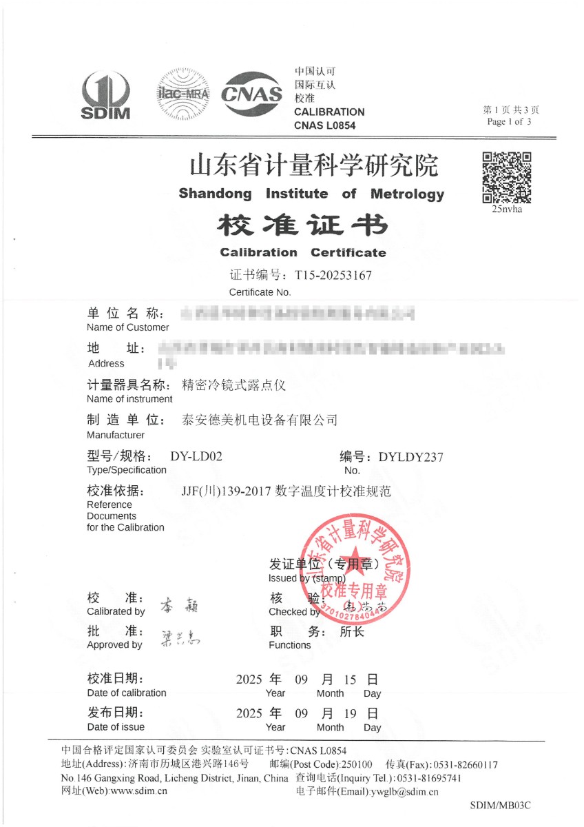 | 上一條:高精度數(shù)字溫度計(jì)(-20-100℃)校準(zhǔn)證書 | 下一條:零點(diǎn)恒溫器校準(zhǔn)證書 |