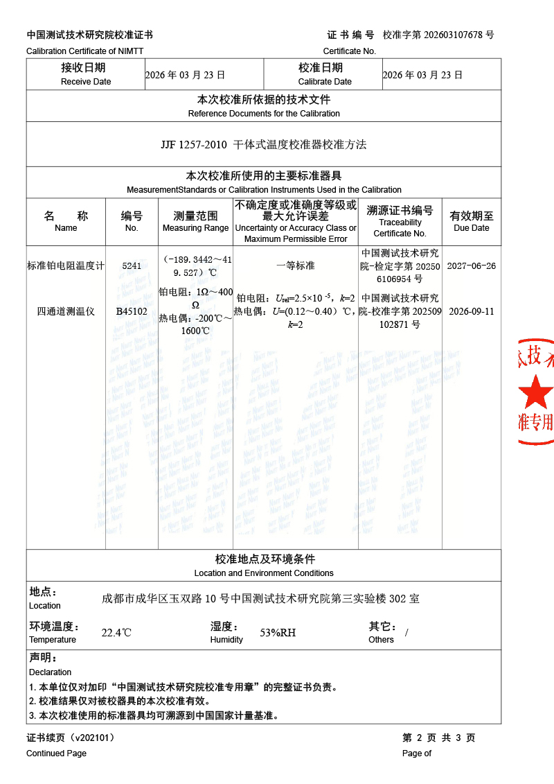 干體爐-校準證書 2026-3-25 本文被閱讀 432 次