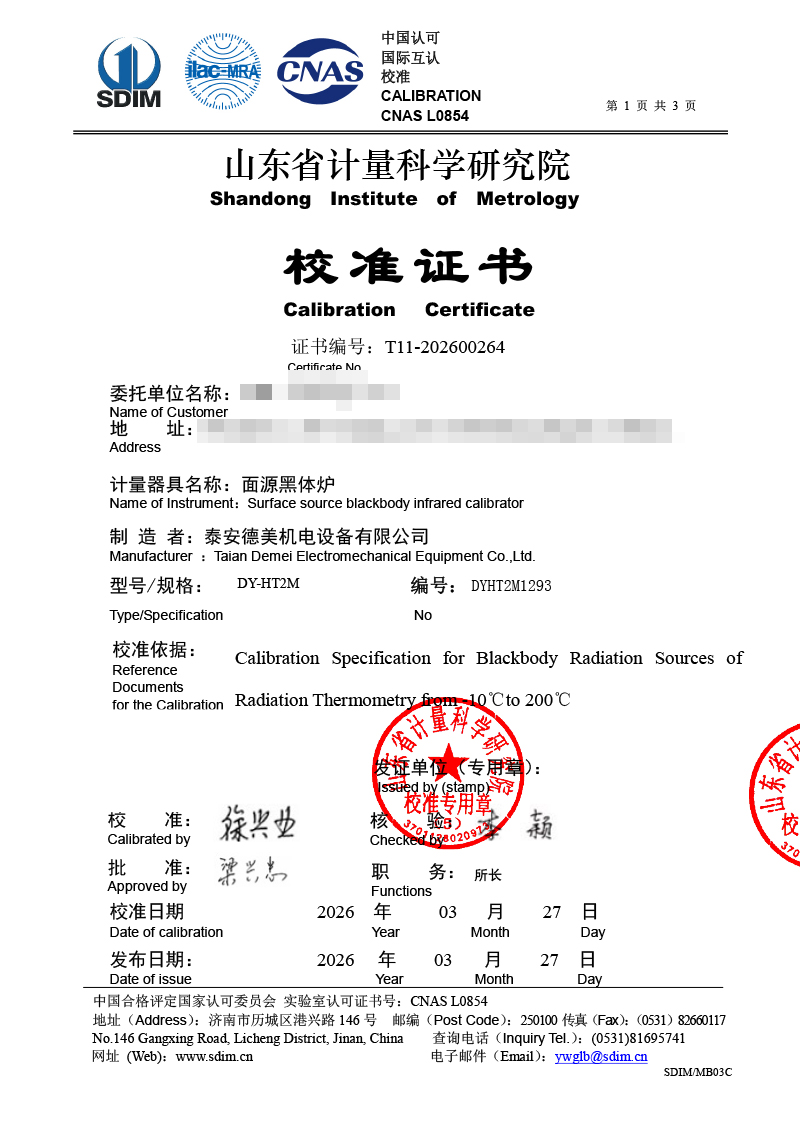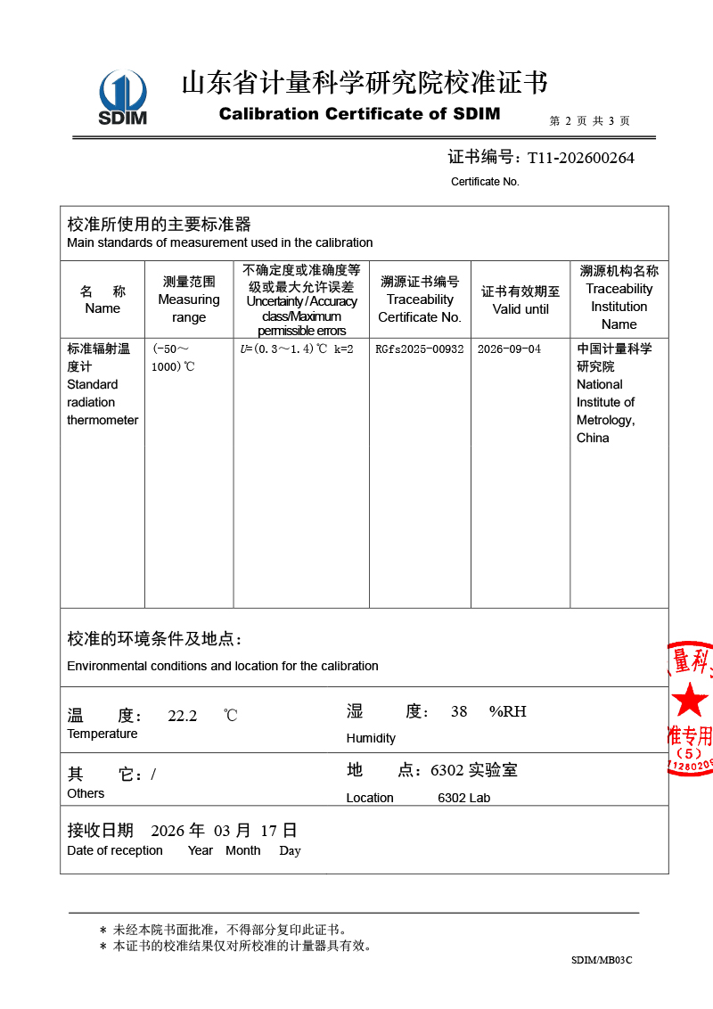 面源黑體爐-校準(zhǔn)證書 2026-4-7 本文被閱讀 745 次