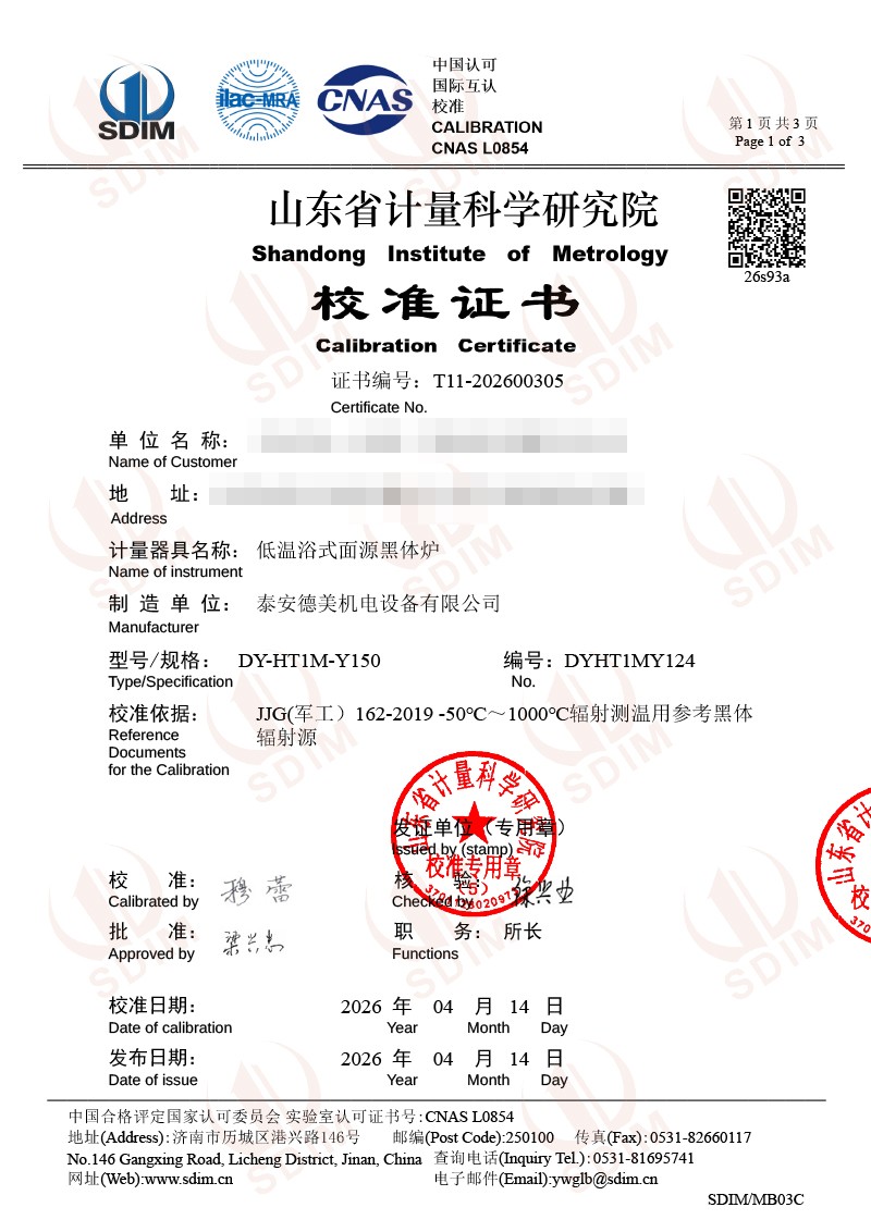 低溫浴式面源黑體爐-校準證書 2026-4-20 本文被閱讀 70 次