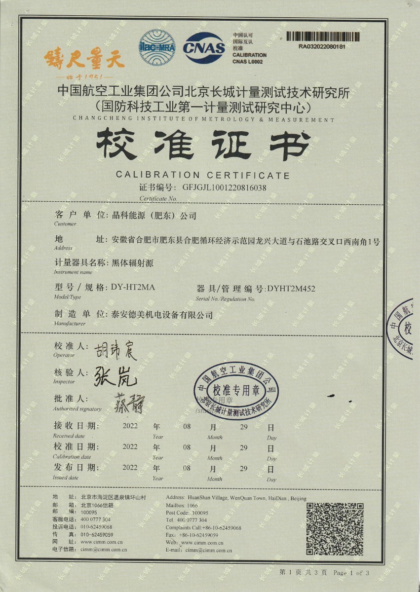 晶科能源(肥東)公司-黑體輻射源 2022-9-5 本文被閱讀 12567 次