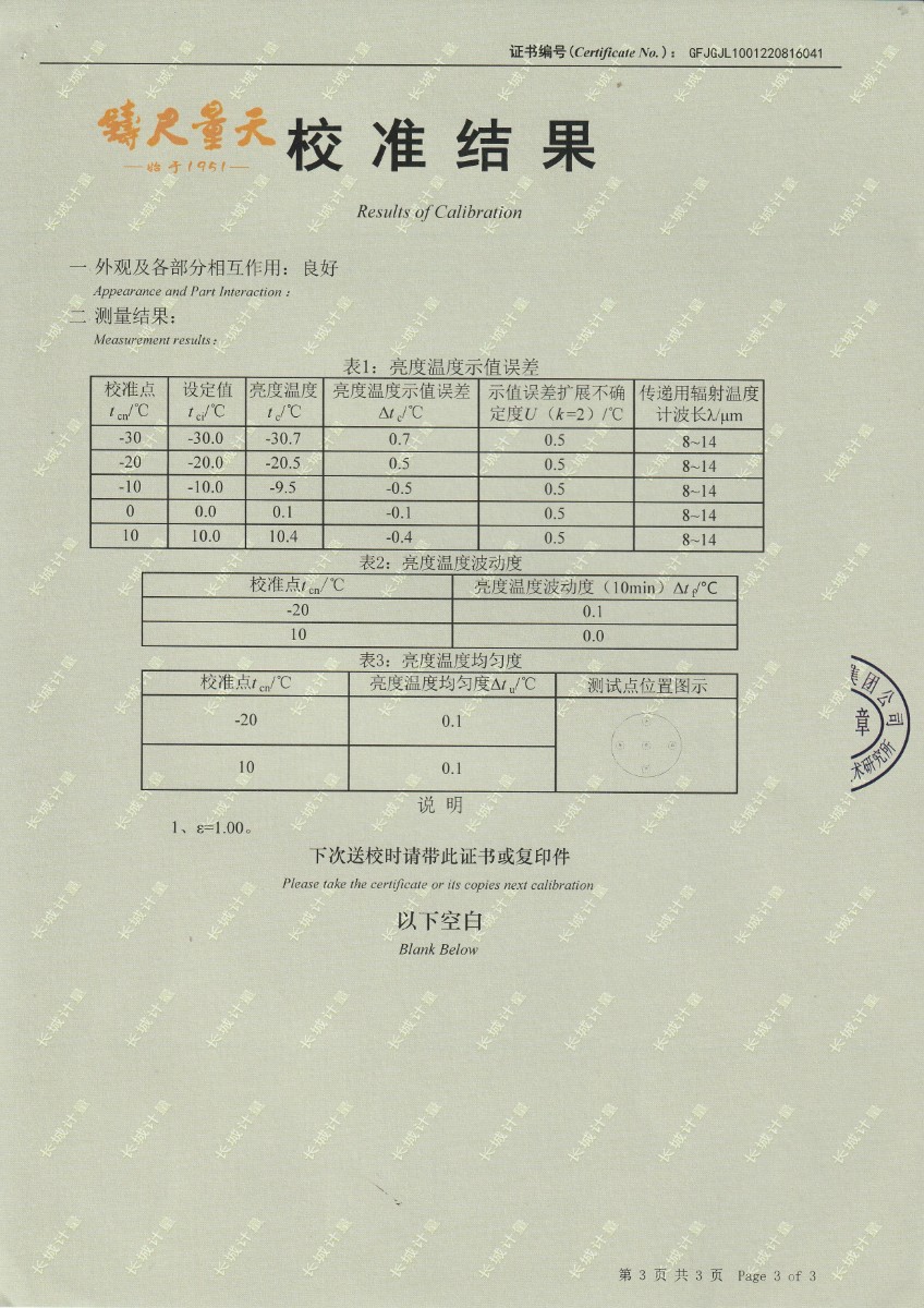 | 上一條:晶科能源(金昌)公司-黑體輻射源 | 下一條:冷鏡式露點(diǎn)儀校準(zhǔn)證書 |