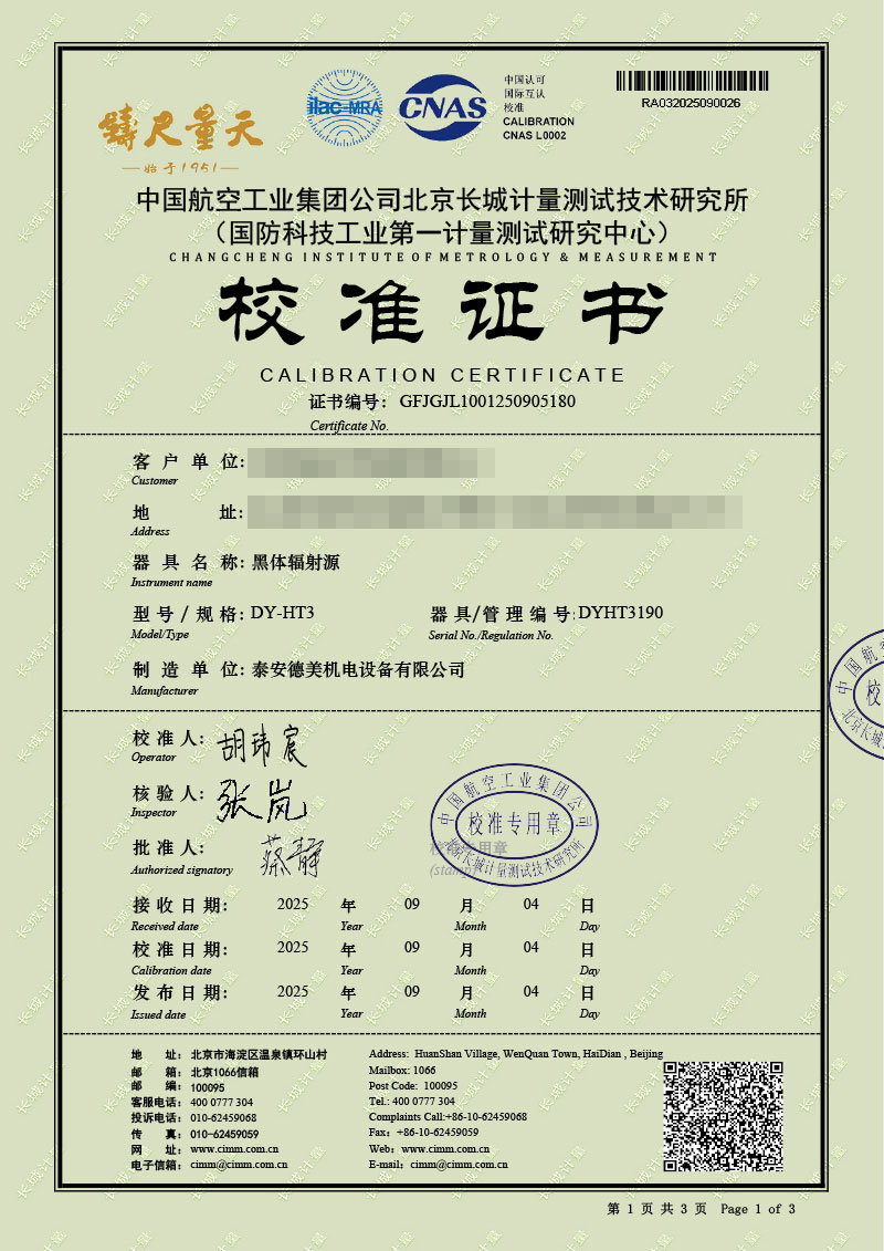 | 上一條:溫濕度檢定箱(-20-70℃)校準(zhǔn)證書 | 下一條: DY-HT1D-100C超低溫黑體輻射源 |