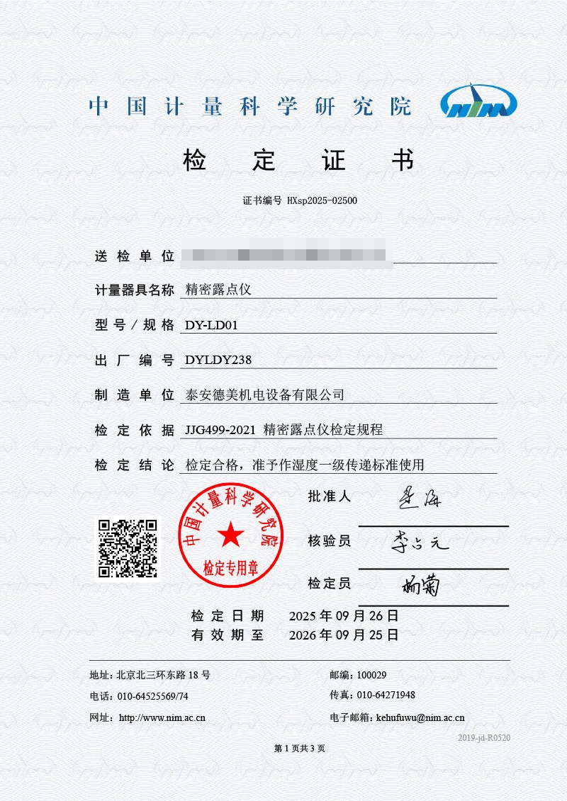 露點儀檢定證書 2025-9-29 本文被閱讀 1817 次