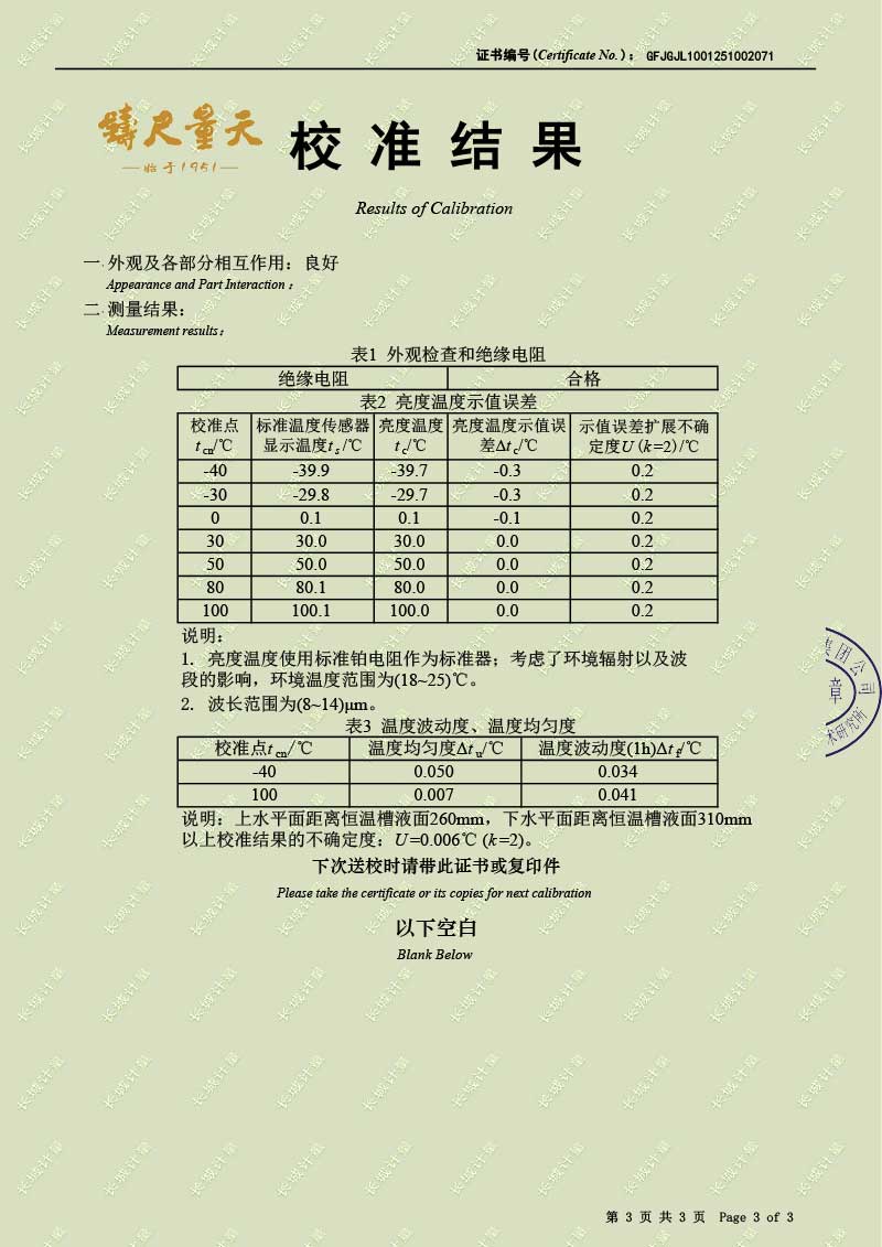 低溫液槽式黑體爐(-40-100℃)校準證書 2025-10-30 本文被閱讀 343 次