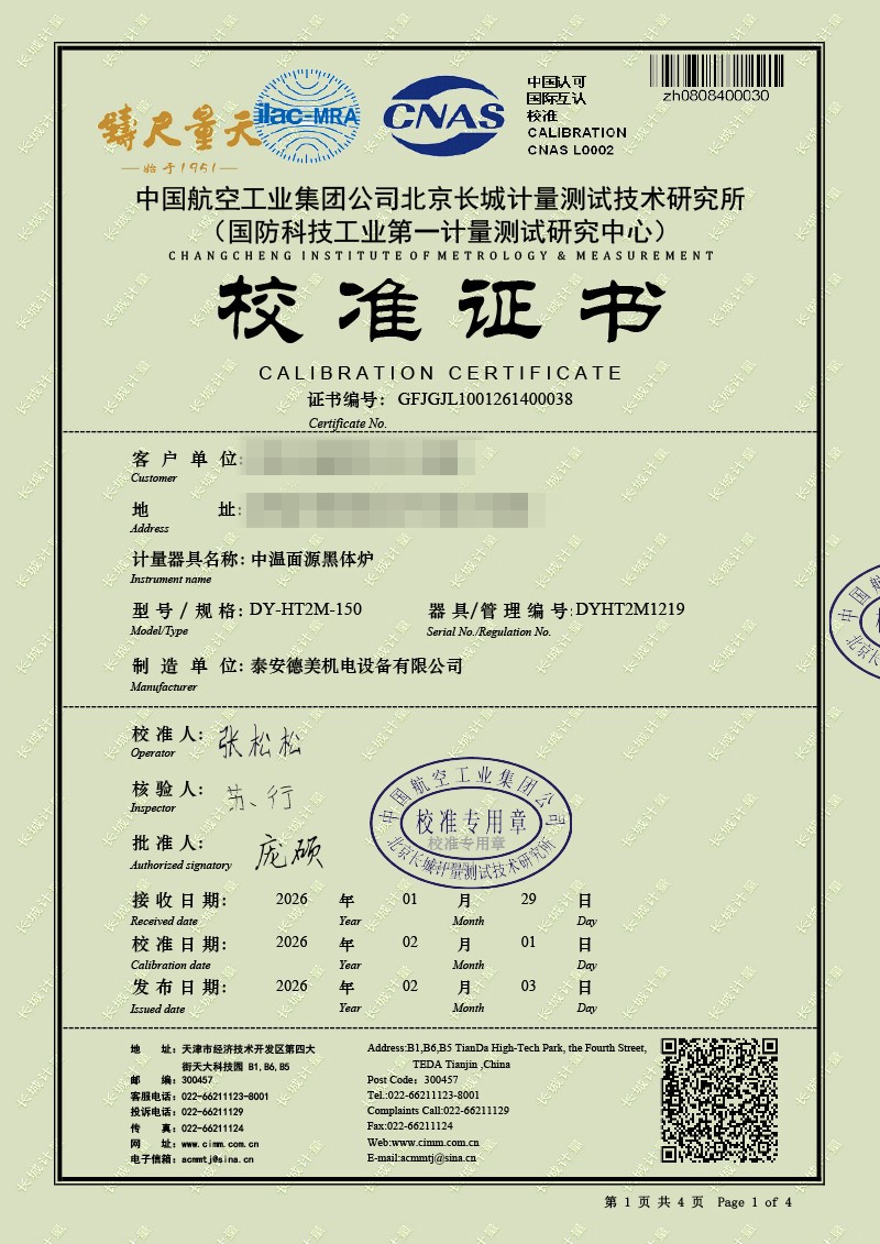 中溫面源黑體爐-校準(zhǔn)證書 2026-2-11 本文被閱讀 705 次