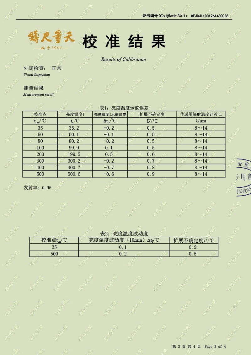 中溫面源黑體爐-校準(zhǔn)證書