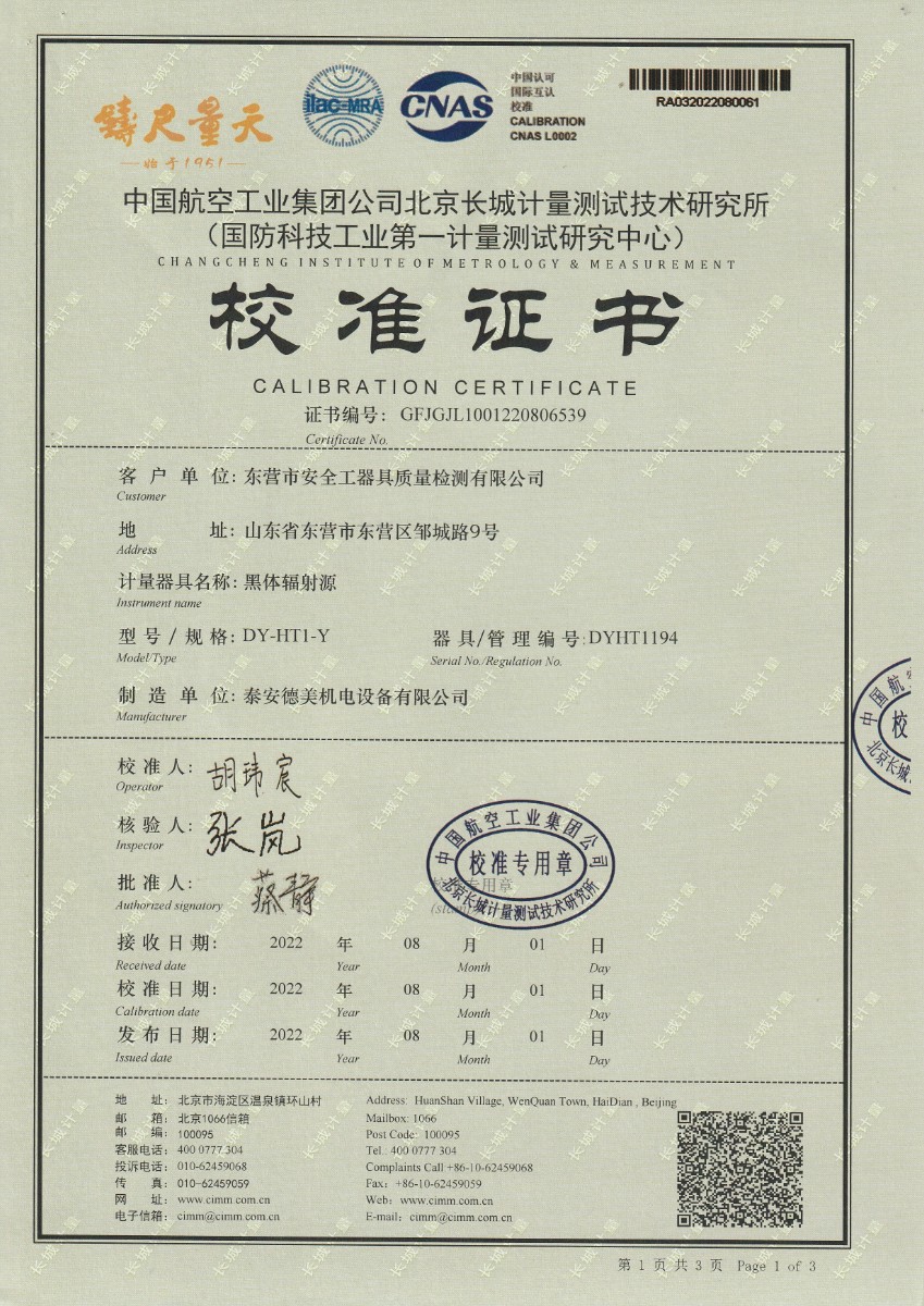 | 上一條:東營(yíng)市安全工器具質(zhì)量檢測(cè)有限公司-黑體輻射源DY-HT2 | 下一條:冷鏡式露點(diǎn)儀校準(zhǔn)證書(shū) |