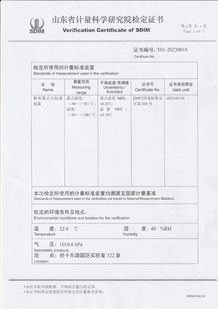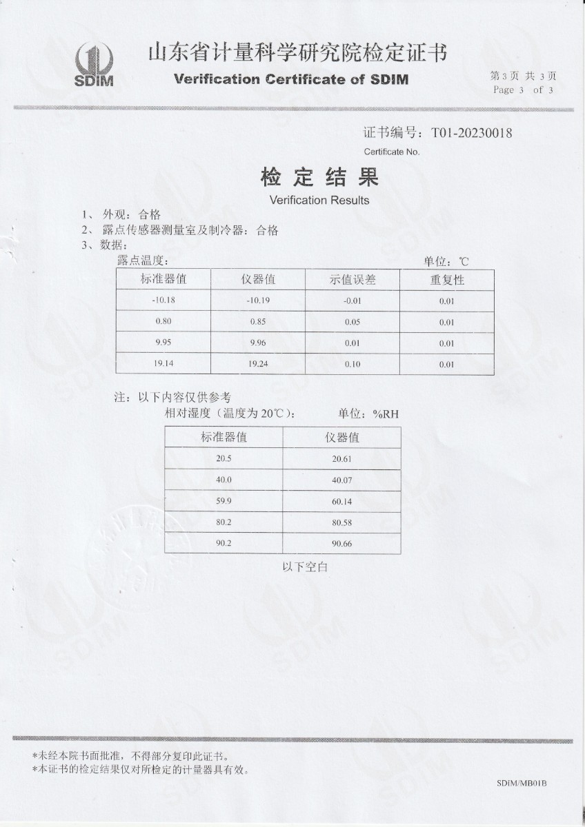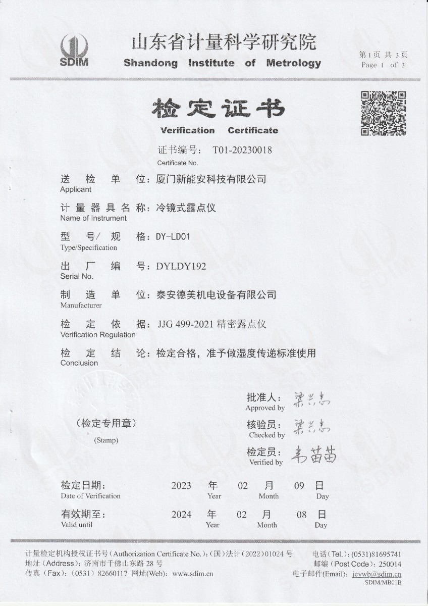 廈門新能安科技有限公司 冷鏡式露點儀 檢定證書 2023-2-25 本文被閱讀 9814 次