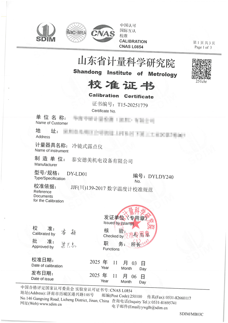 冷鏡式露點(diǎn)儀校準(zhǔn)證書 2025-11-7 本文被閱讀 23 次
