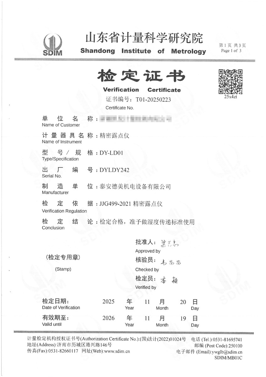 露點(diǎn)儀檢定、校準(zhǔn)證書 2025-12-4 本文被閱讀 908 次