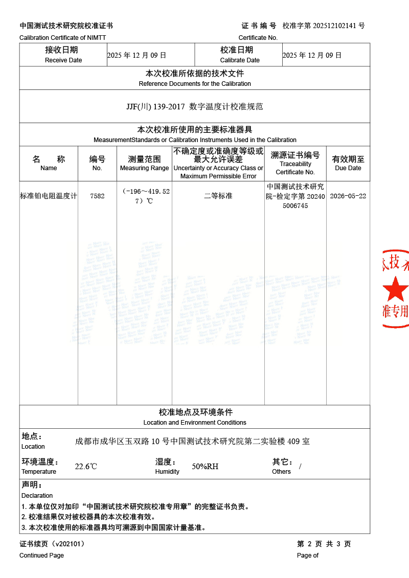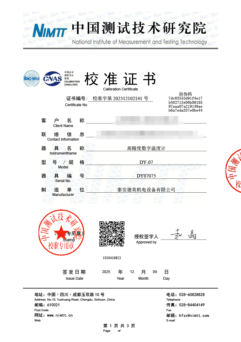 高精度數(shù)字溫度計校準(zhǔn)證書 2025-12-11 本文被閱讀 471 次