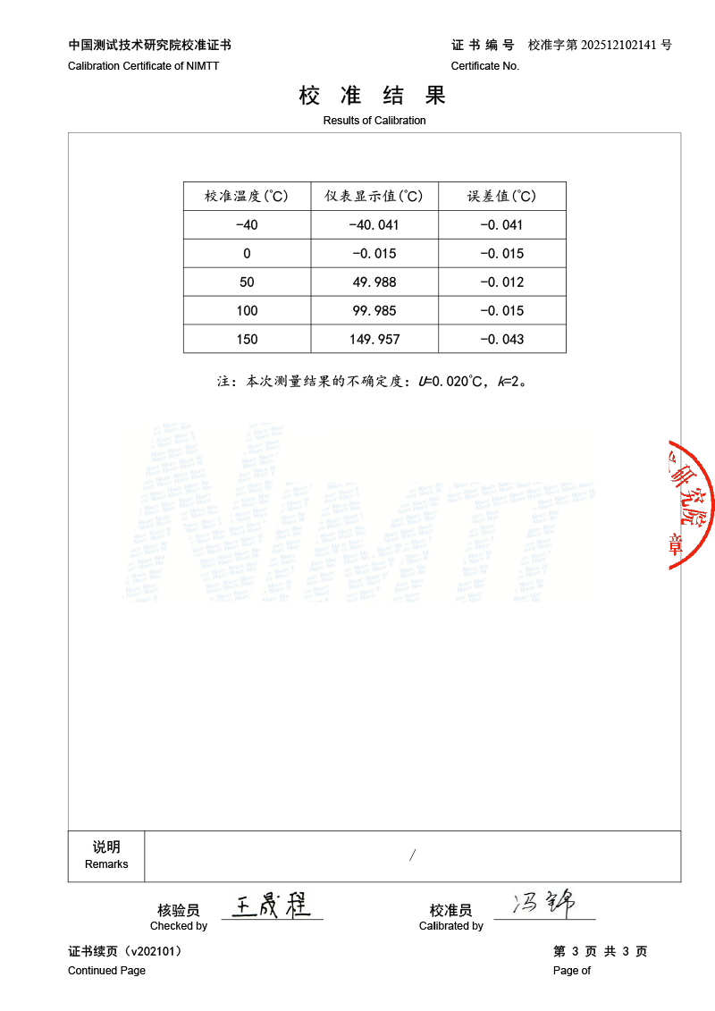 高精度數(shù)字溫度計校準(zhǔn)證書