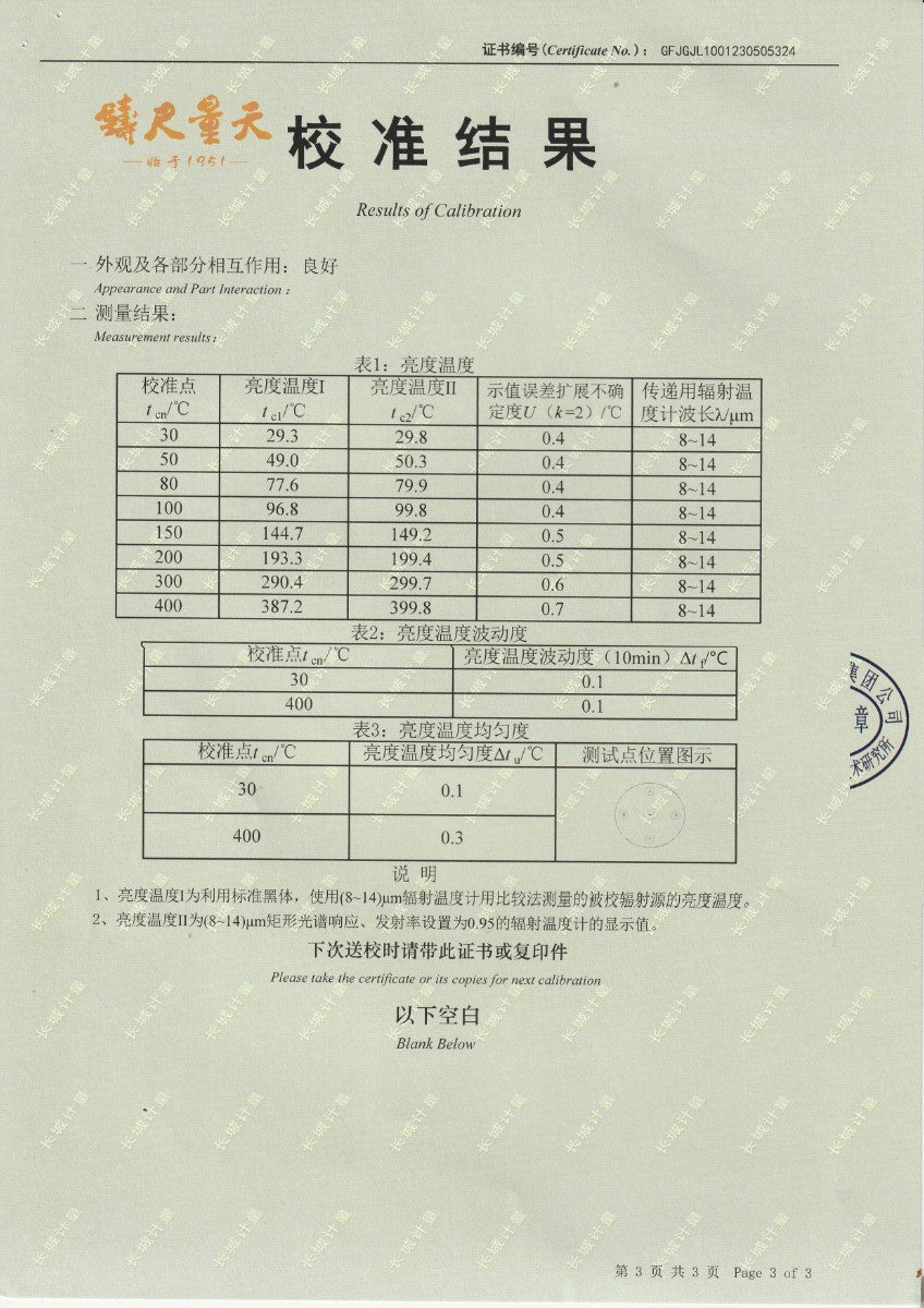 | 上一條:西安機電信息技術(shù)研究所 面源黑體爐 校準(zhǔn)證書 | 下一條:冷鏡式露點儀校準(zhǔn)證書 |