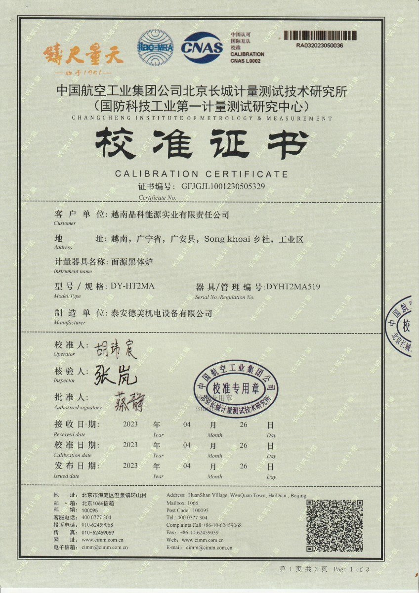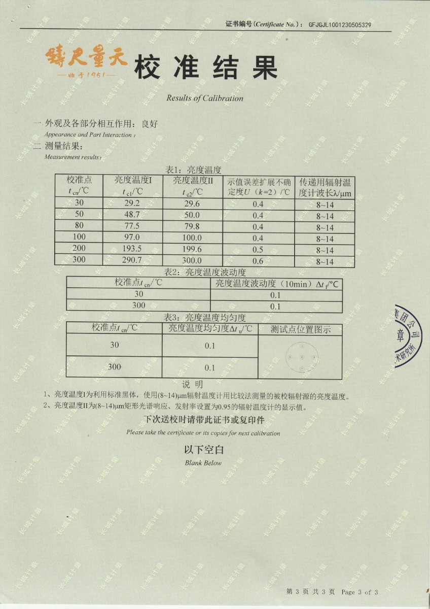 | 上一條:淮安捷泰新能源科技有限公司 黑體輻射源 校準(zhǔn)證書(shū) | 下一條:冷鏡式露點(diǎn)儀校準(zhǔn)證書(shū) |