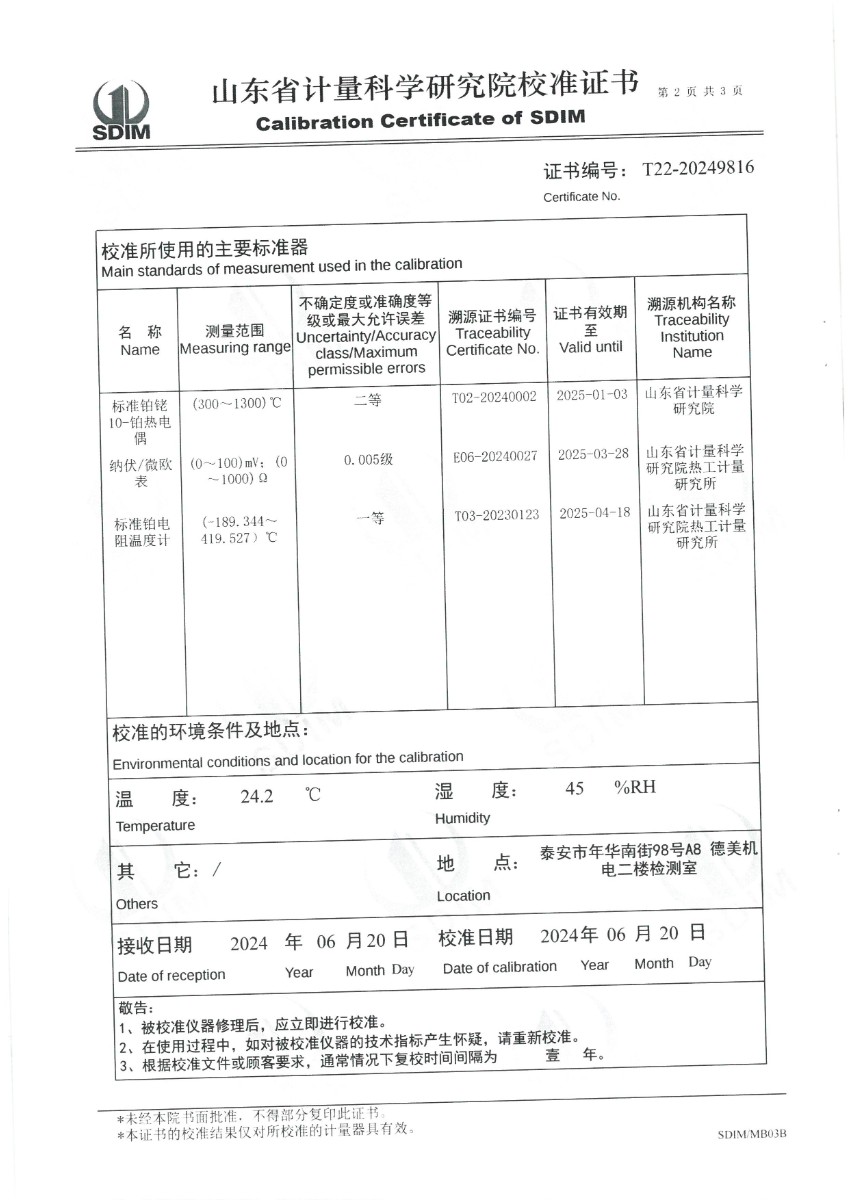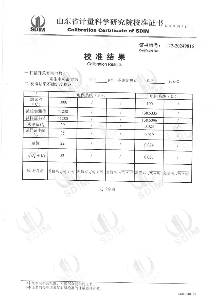 | 上一條:廉金屬熱電偶檢定爐(300~1200℃)校準(zhǔn)證書 | 下一條:冷鏡式露點儀校準(zhǔn)證書 |