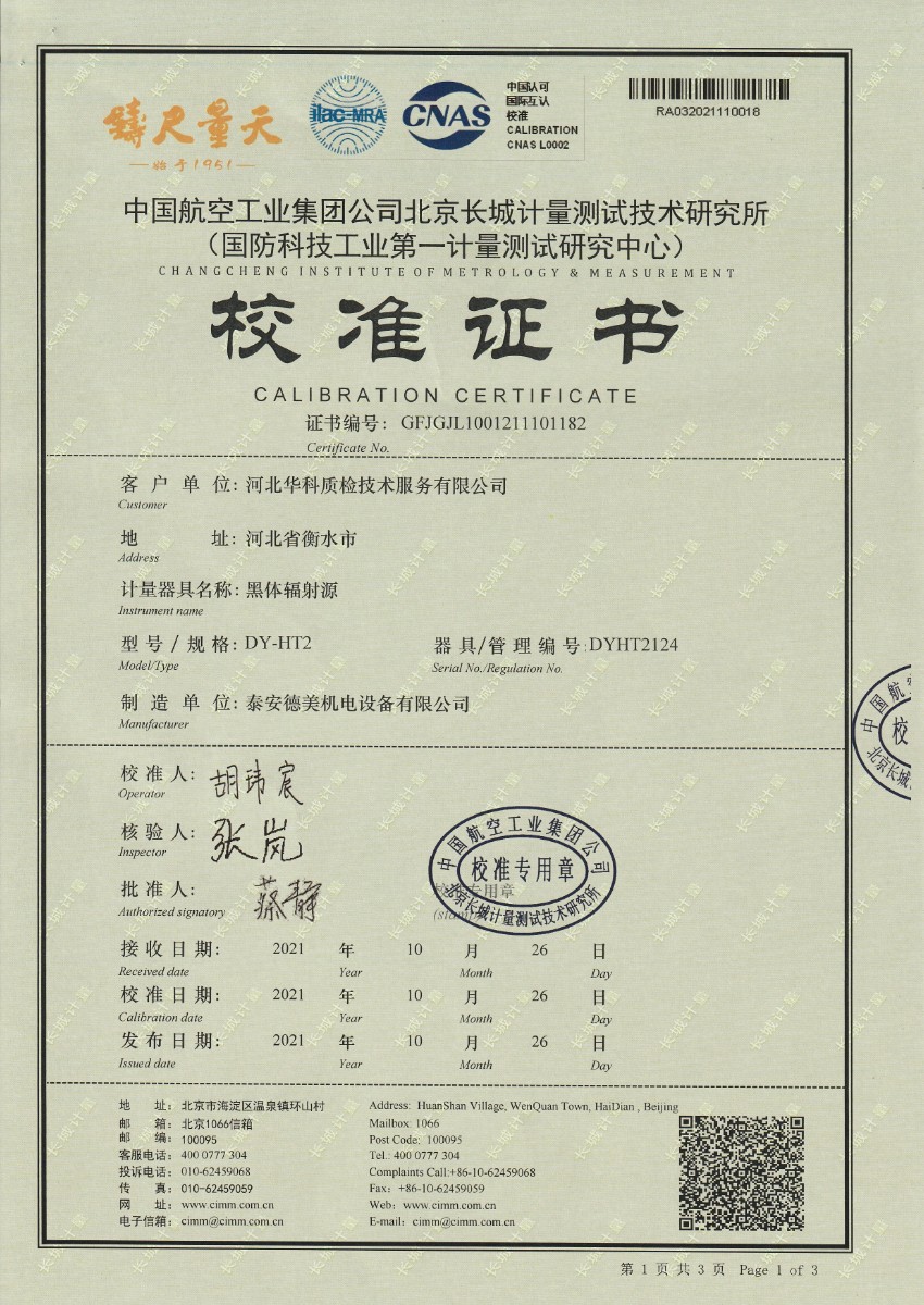 | 上一條:河北華科質(zhì)檢技術(shù)服務(wù)有限公司-黑體輻射源(DY-HT1) | 下一條:冷鏡式露點儀校準(zhǔn)證書 |