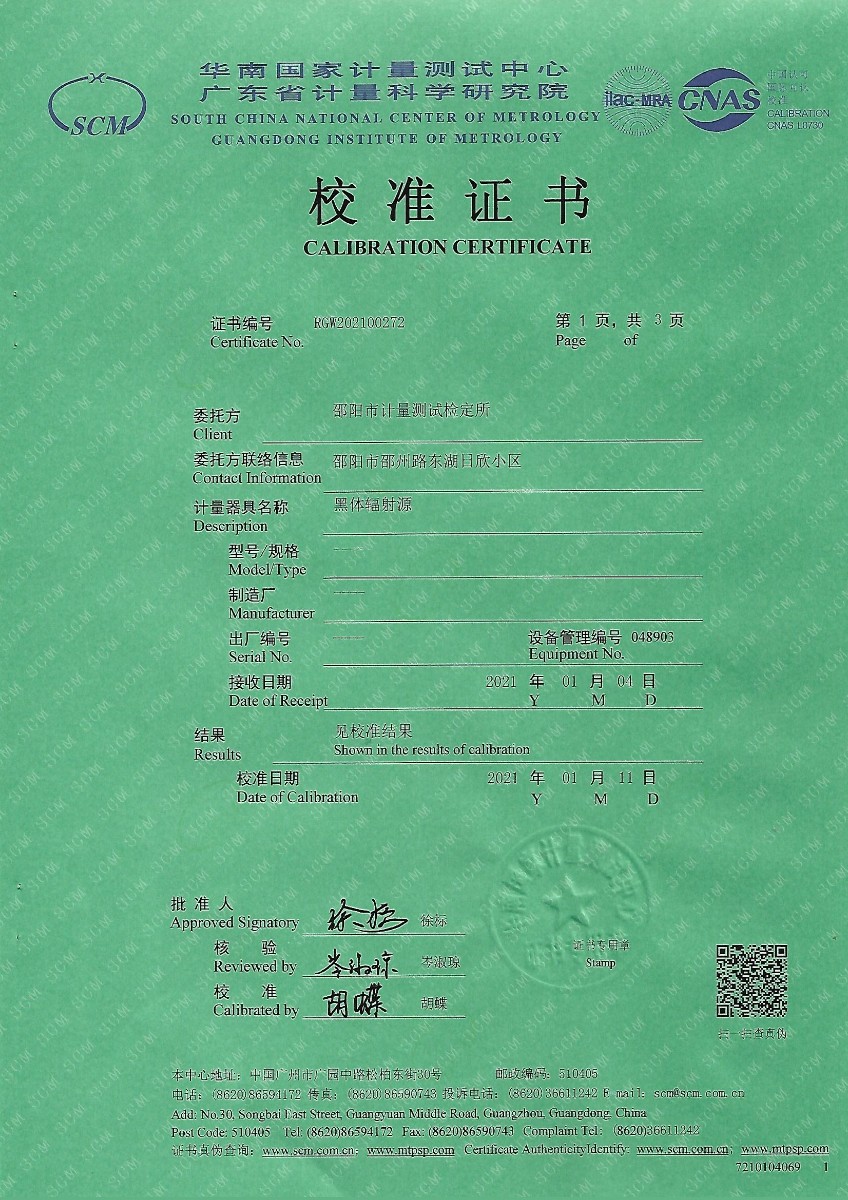 | 上一條:長沙彼樂機(jī)電設(shè)備有限公司-體溫黑體爐耳溫部分 | 下一條:冷鏡式露點(diǎn)儀校準(zhǔn)證書 |