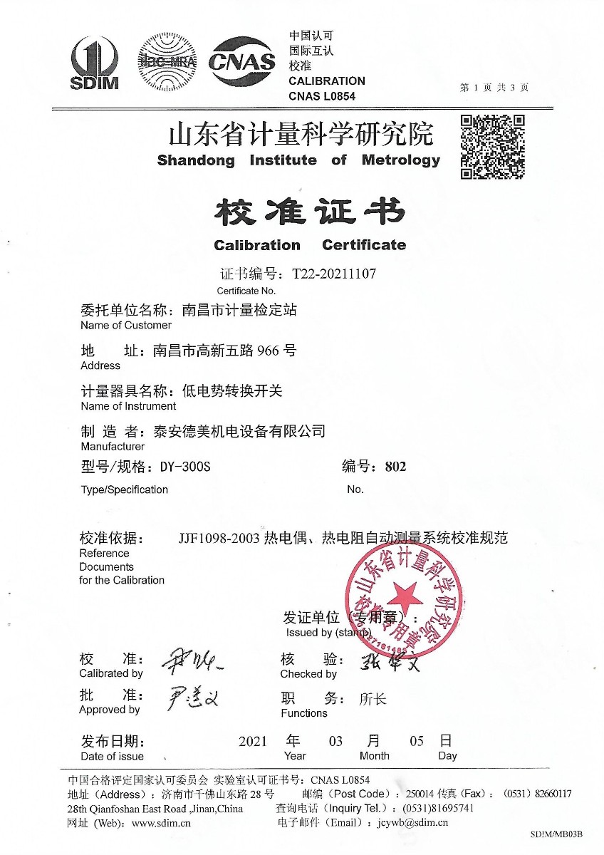 | 上一條:淮安市計(jì)量測(cè)試-零點(diǎn)恒溫器 | 下一條:冷鏡式露點(diǎn)儀校準(zhǔn)證書 |