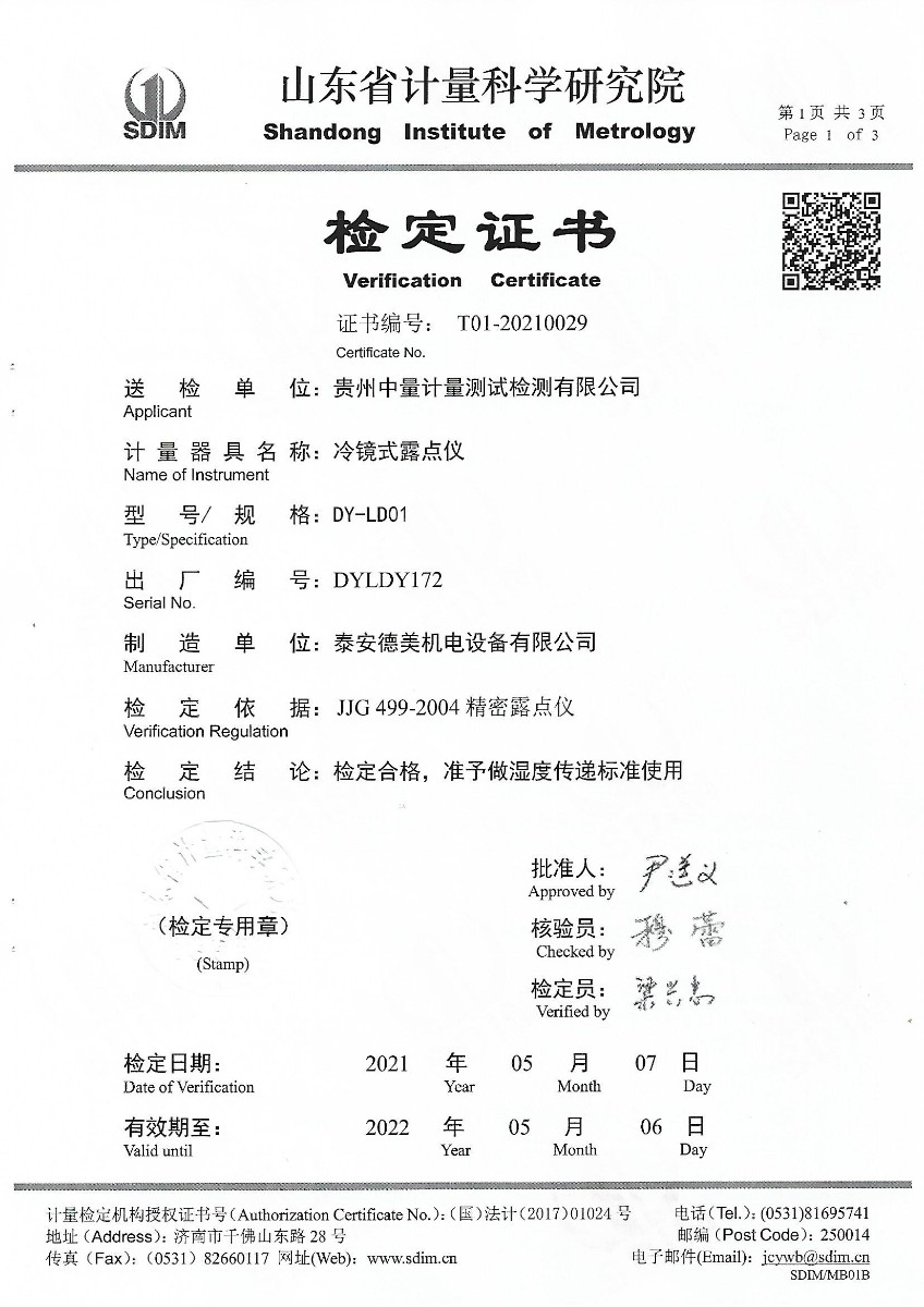 | 上一條:廣州南大康德信檢測技術(shù)有限公司-溫濕度檢定箱 | 下一條:冷鏡式露點(diǎn)儀校準(zhǔn)證書 |
