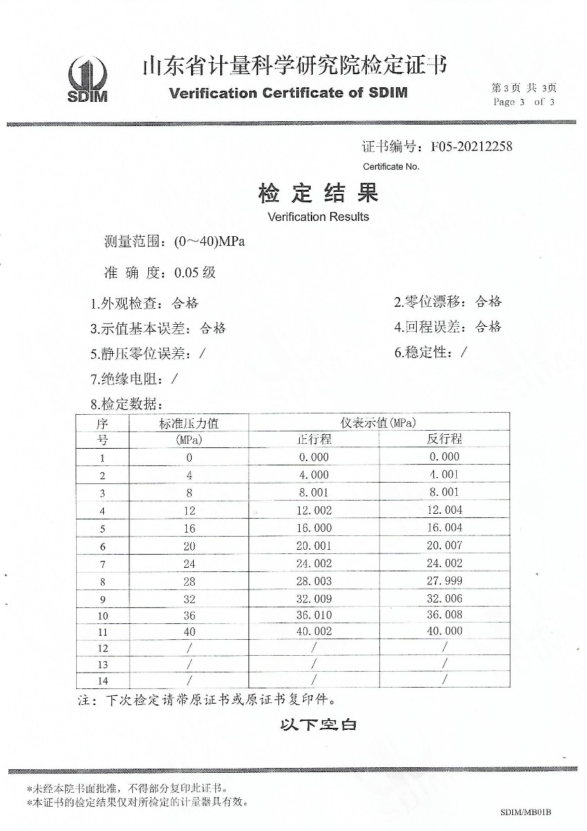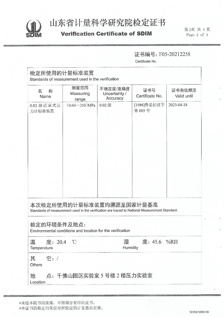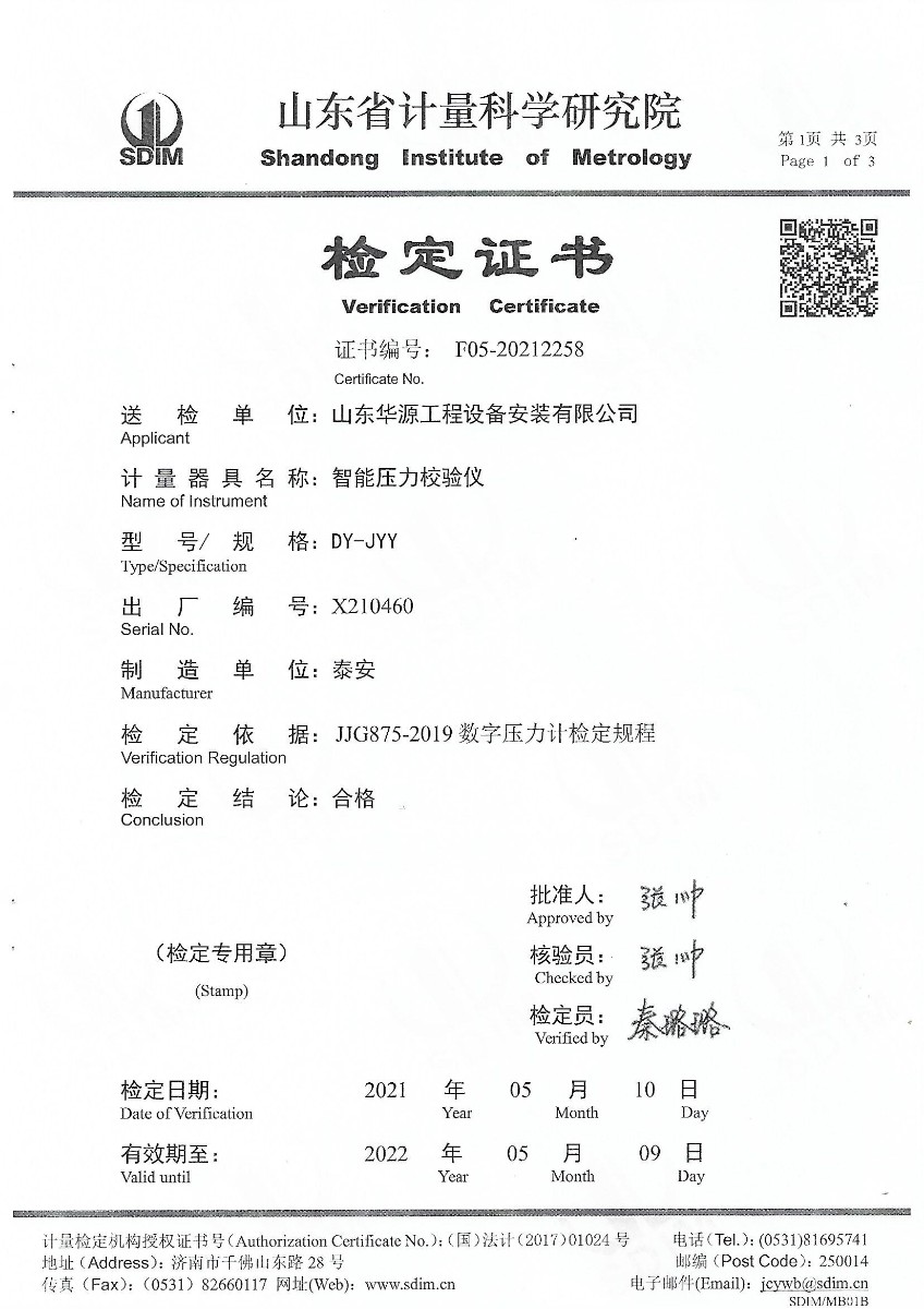 上一條:山東華源工程設備安裝有限公司-智能壓力校驗儀X210459下一條:冷鏡式露點儀校準證書