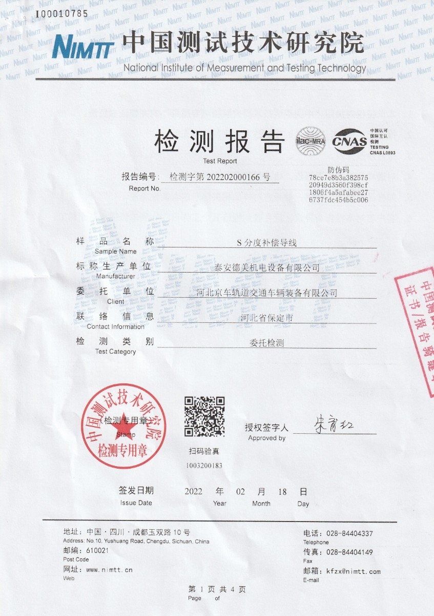 河北京車軌道交通車輛裝備有限公司S分度補(bǔ)償導(dǎo)線