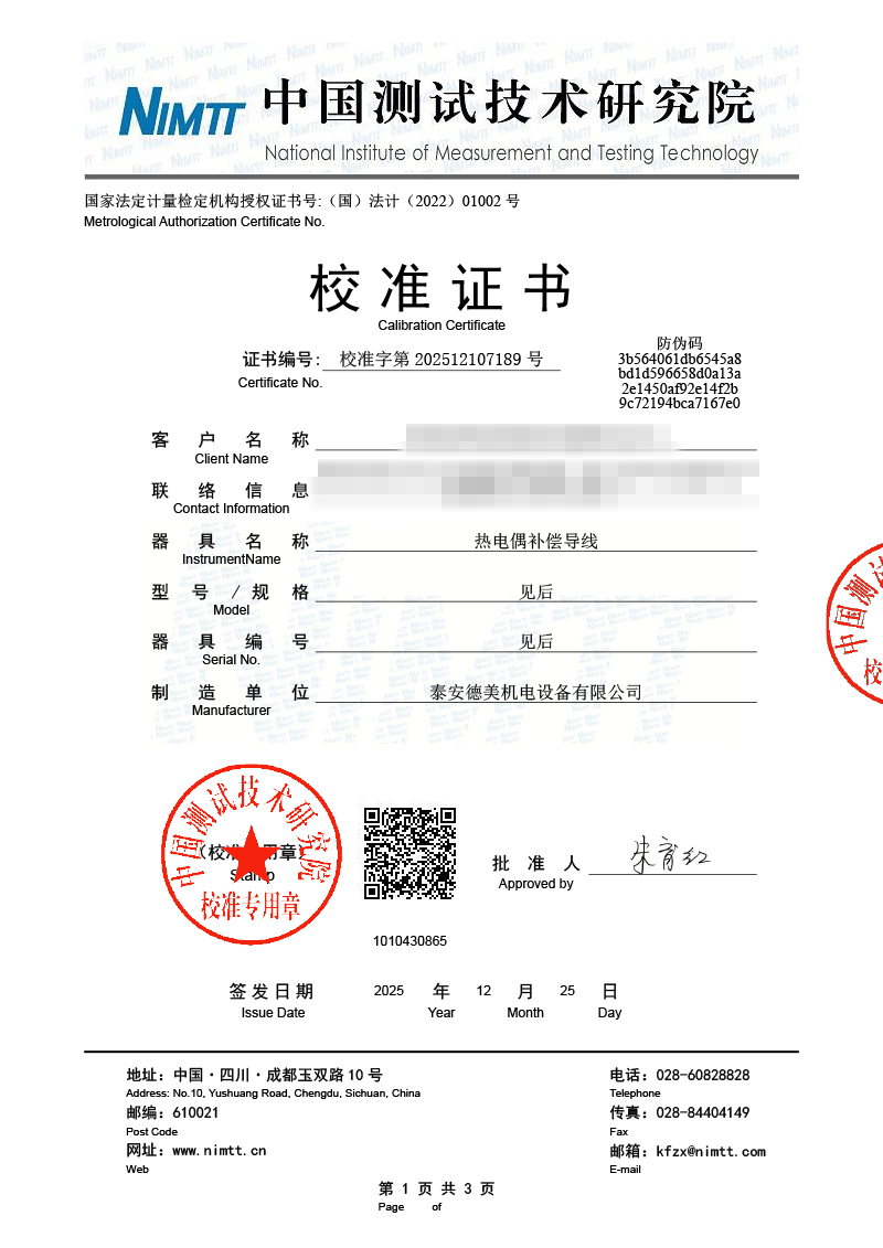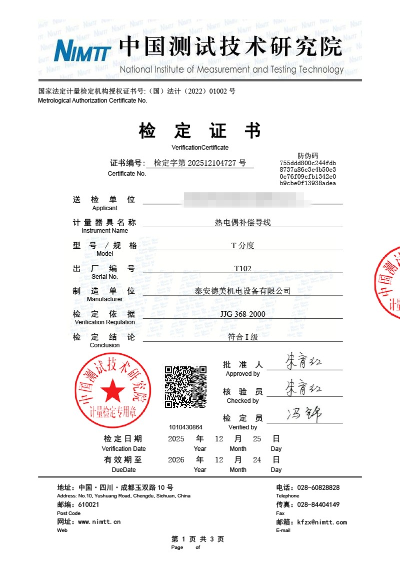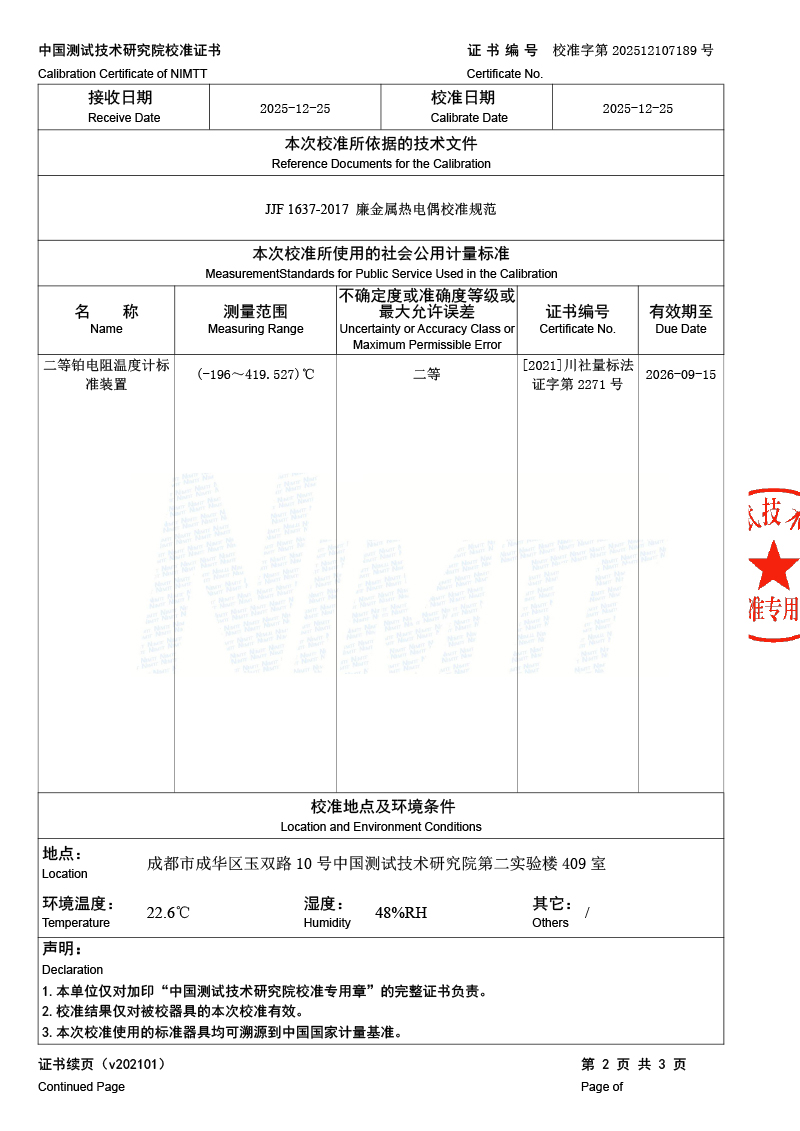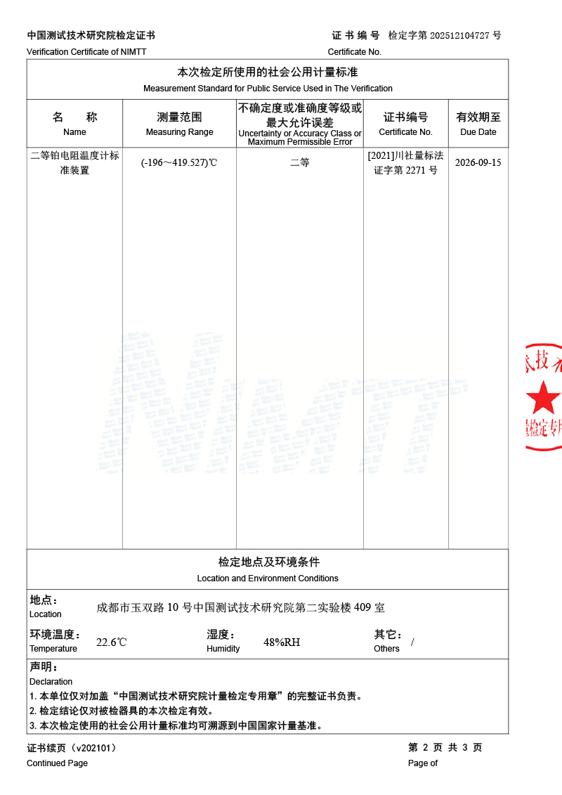 | 上一條:標(biāo)準(zhǔn)水銀溫度計(jì)檢定證書 | 下一條:水三相點(diǎn)瓶?jī)鲋票4嫜b置-校準(zhǔn)證書 |