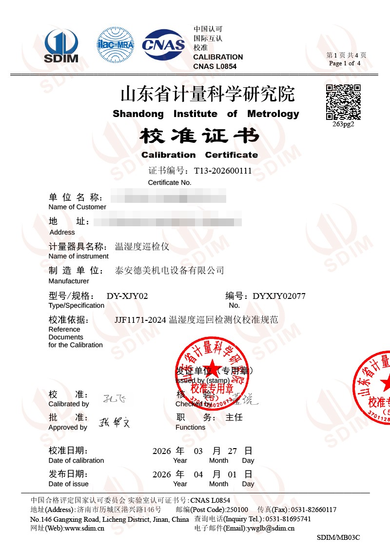 | 上一條:溫濕度巡檢儀測試系統(tǒng)-校準(zhǔn)證書 | 下一條:高精度數(shù)字溫度計(jì)-校準(zhǔn)證書 |